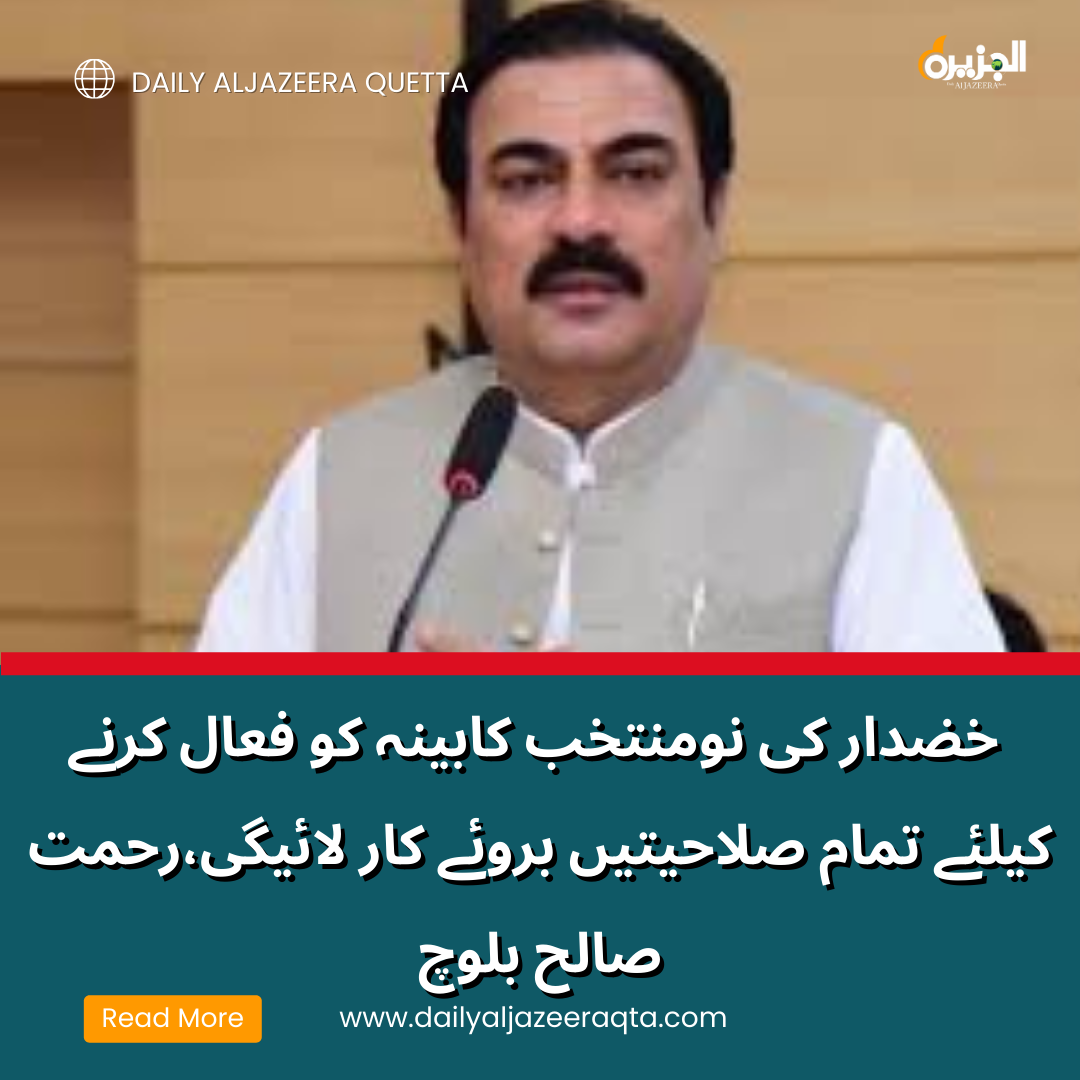 نیشنل پارٹی خضدار کی نومنتخب کابینہ کو فعال کرنے کیلئے تمام صلاحیتیں بروئے کار لائیگی،رحمت صالح بلوچ