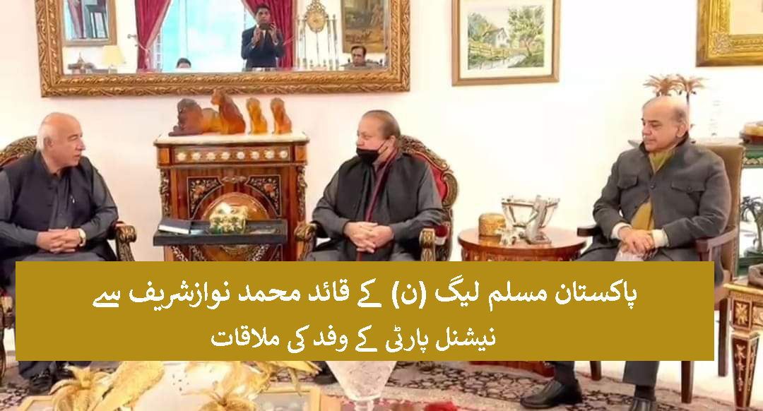 پاکستان مسلم لیگ (ن) کے قائد محمد نوازشریف سے نیشنل پارٹی کے وفد کی ملاقات نیشنل پارٹی کے چھ رکنی وفد کی قیادت پارٹی صدر ڈاکٹر عبدالمالک بلوچ نے کی ملاقات میں سابق وزیراعظم اور پاکستان مسلم لیگ (ن) کے صدر شہبازشریف بھی شریک ہوئے