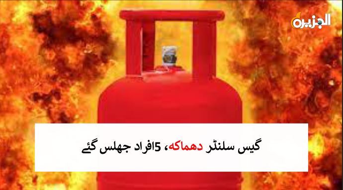 تفصیلات کے مطابق جہلم کی تحصیل دینہ کے علاقہ پیرشاہ وسن میں ایل پی جی سلنڈر لیکج کے باعث دھماکے سے بھڑک اٹھی جس سے گھرمیں موجود 75سالہ بزرگ محمد اصغر، 28سالہ خوشنود اختر،57سالہ شبیر، 38سالہ عدنان اور 35 سالہ یاسر جھلس گئے۔