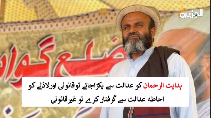 مولانا ہدایت الرحمان بلوچ کو عدالت سے پکڑاجائے توقانونی اورلاڈلے کو احاطہ عدالت سے گرفتار کرے تو غیرقانونی۔مولانا ہدایت الرحمان بلوچ کو چار ماہ میں رہائی نہ ملے اور لاڈلے کو دودن میں رہائی ملی یہ کھلم کھلا عدالتی تضادہے عدالت واپاکستان کو بدنام کرنے والے خلاف قانون اور ناقابل قبول ہیں ڈومیسائیل کی بنیاد پر ایک ملک میں دوقوانین کسی صورت قبول نہیں ظلم وجبر کا یہ نظام زیادہ دیر نہیں چلیگا۔