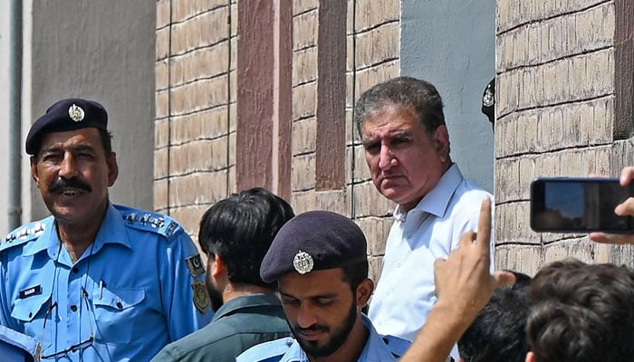 اولپنڈی کی عدالت میں پی ٹی آئی کے وائس چیئرمین شاہ محمود قریشی کے خلاف ڈیوٹی مجسٹریٹ سید جہانگیر علی نے 9 مئی جی ایچ کیو حملہ کیس کی سماعت کی جس سلسلے میں پی ٹی آئی رہنما کو ہتھکڑیاں لگاکر عدالت میں پیش کیا گیا۔