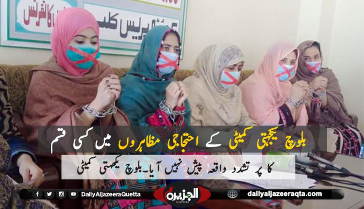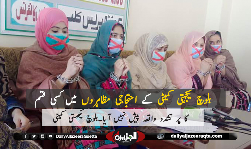 مختلف علاقوں میں احتجاجی مظاہرہ کرنے پر ہراساں کیاگیا۔دھمکیوں کے باوجوہ احتجاجی مظاہرے میں خواتین کی بڑی تعداد نے شرکت کی عوام کو پرامن احتجاج کرنے سے روکنا غیر آئینی عمل ہے ۔کریمہ بلوچ کے قتل کے خلاف بلوچ یکجہتی کمیٹی کے زیر اہتمام دو جنوری کو کوئٹہ میں گرینڈ احتجاجی ریلی منعقد کی جائے گی